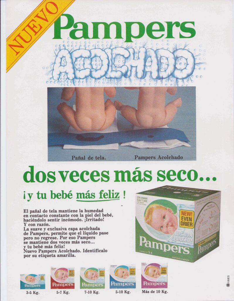 Our copywriter constantly seemed to have trouble saying the word “Pampers” replacing it with “Pams-per” – some consonant clusters are hard in other languages. She persevered through her frustration and our commercials were approved. The idea was to show a happier, drier baby in its Pampers. We were not allowed to show live bare bottoms in our print ads or demonstrations.